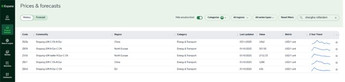 You can search “Shanghai Rotterdam” in Prices & Forecasts (or on the onboarding page where you choose your favourites).