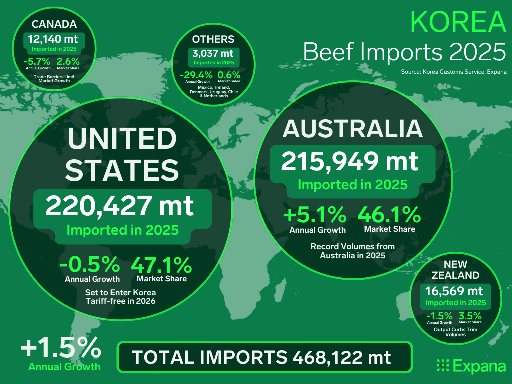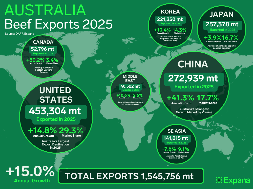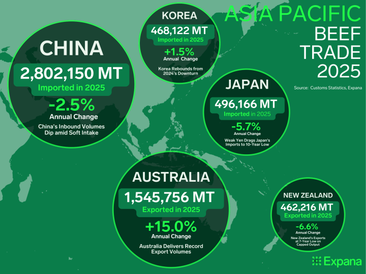 Tighter US supply also pushed Japan and Korea to lean more heavily on Australian beef, reinforcing its role as a key supplier across Northeast Asia.