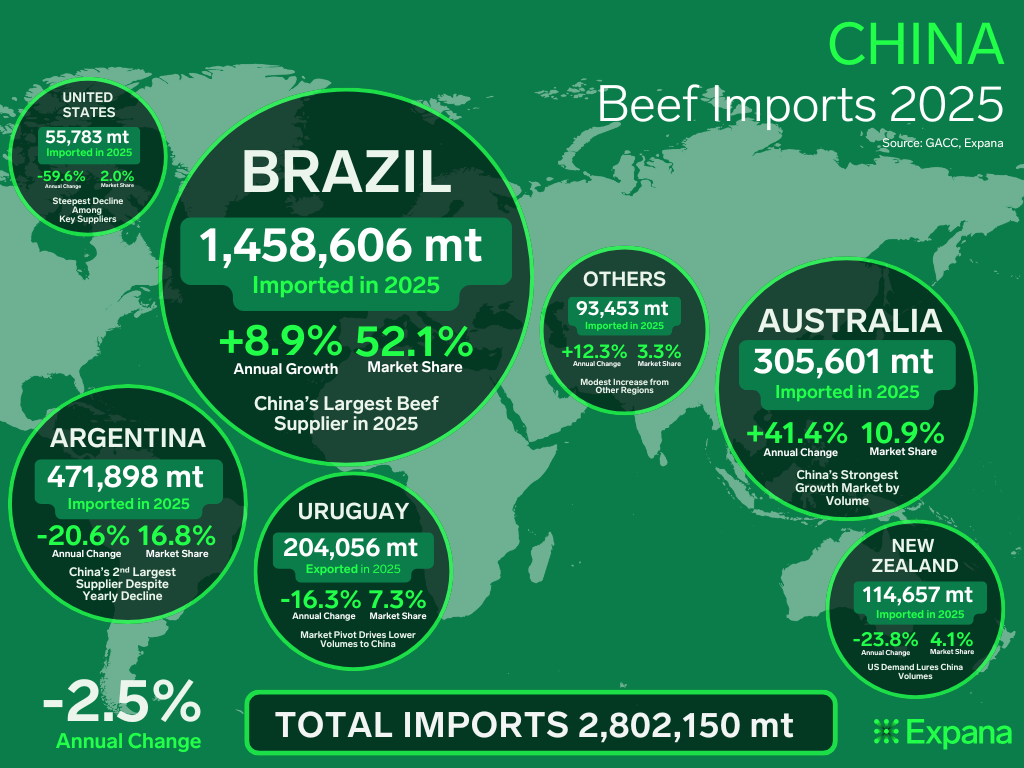 The South American giant ended 2025 with record beef export volumes, especially China reinforcing its status as the world’s most dominant supplier despite tougher trade conditions.