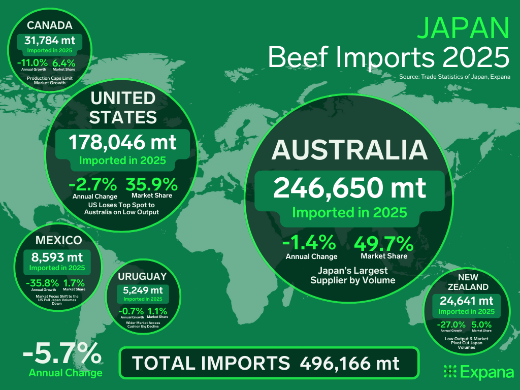 All eyes are now on Brazil’s pending entry into the Japanese market, the world’s second-largest beef importer, which could pressure Australia and New Zealand’s competitive position among grassfed suppliers, particularly in price-sensitive segments.