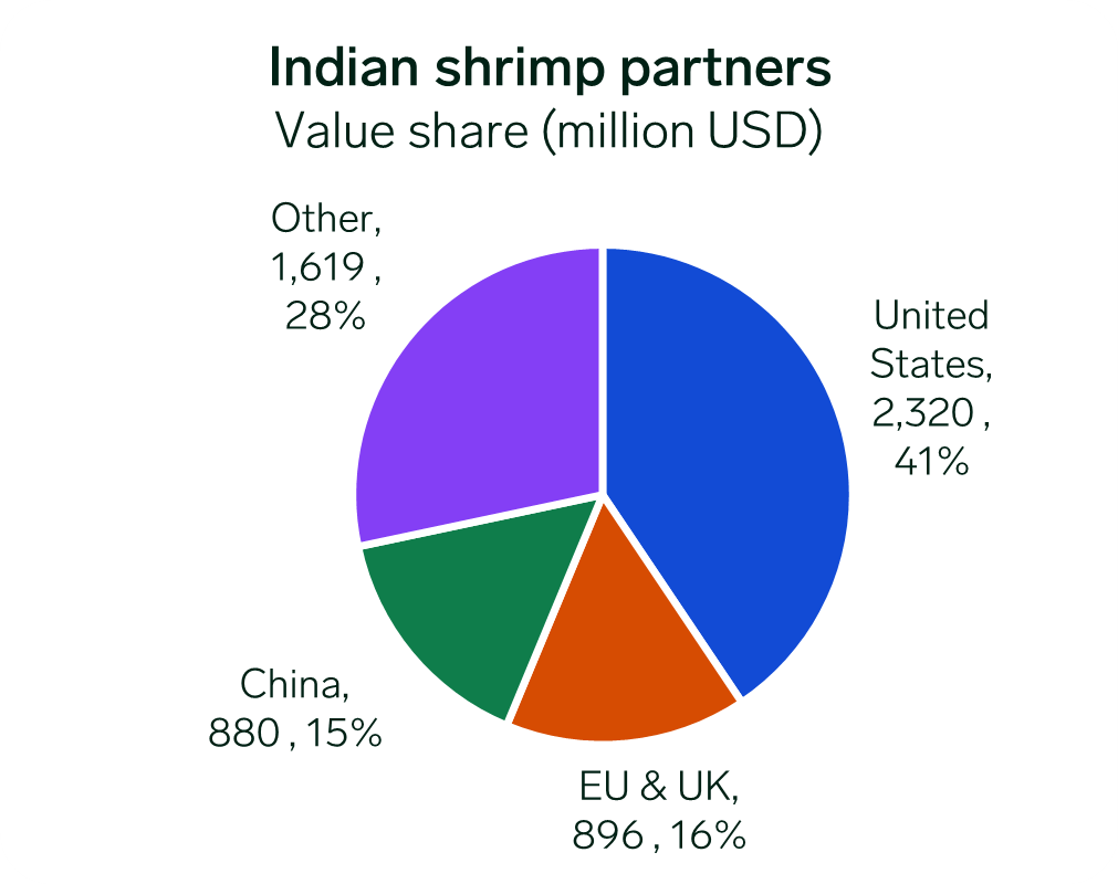 Indirectly, India, Indonesia and Vietnam are major exporters to the Western regions. In 2025, the US and Europe accounted for over half of India’s shrimp export revenue, markets noted for their competitiveness and sensitivity to price.