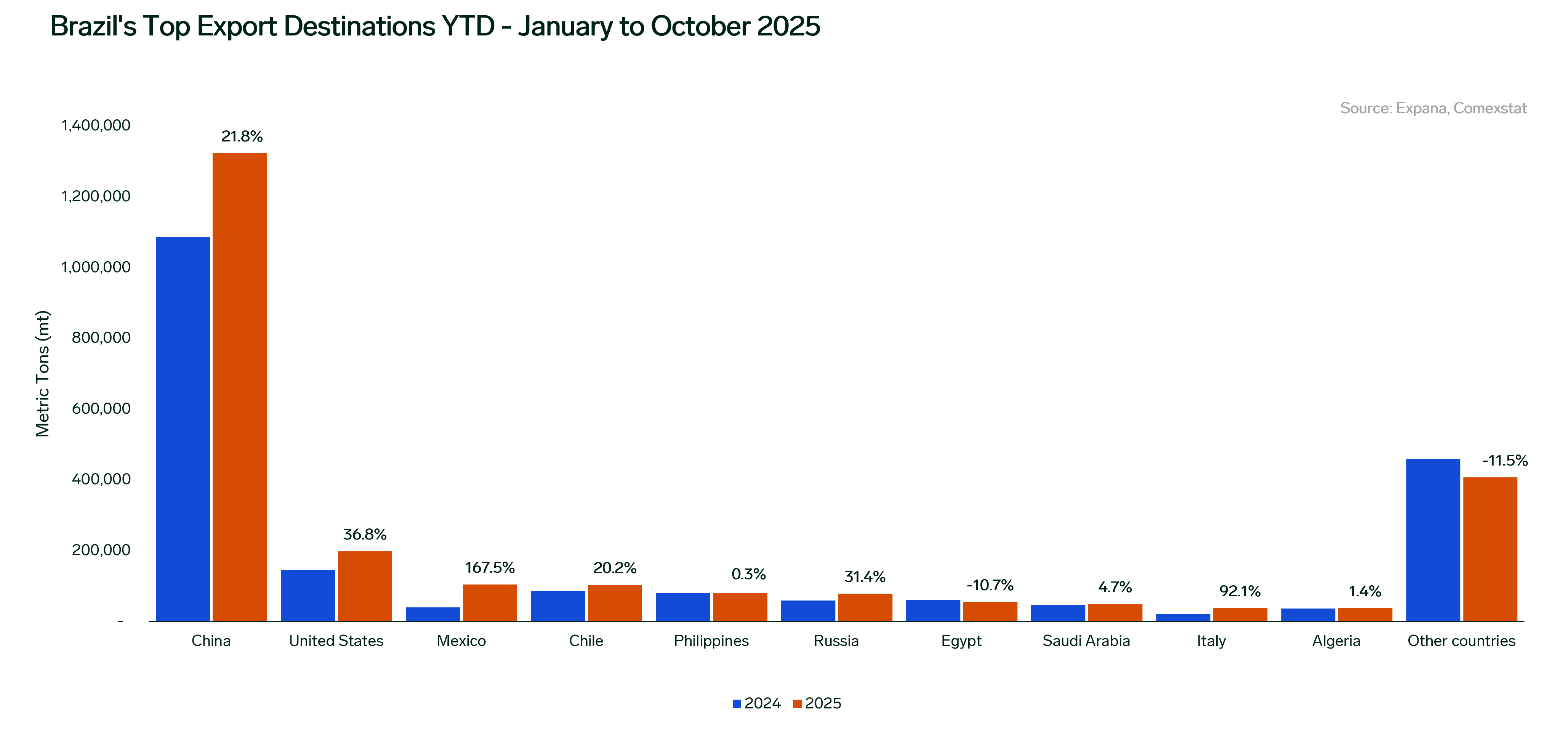 Nevertheless, on a YTD basis, the United States still remains the second largest destination for Brazilian beef, reflecting the large volumes shipped earlier in the year. In addition, over the last couple of months, shipments to the US have rebounded, which historically could be expected for this period as shipments aim to enter the US market when the annual quota is renewed. Earlier in 2025, the 65,000 mt quota exempt from the 26.4% tariff for imports from “other countries,” including Brazil, was rapidly filled up within the first three weeks of January.