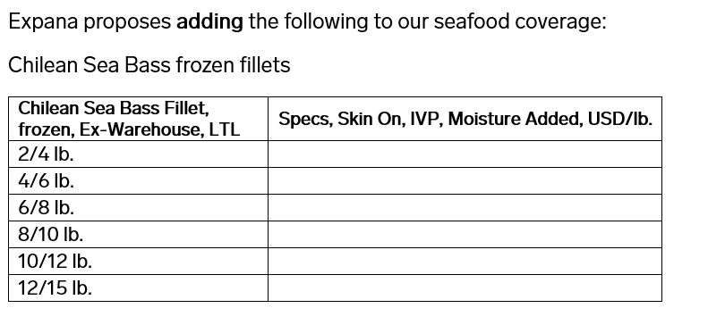 Expana is a leading source for price reporting in the US and European seafood sectors and regularly solicits feedback from stakeholders to ensure that our coverage reflects current trading conditions and practices.