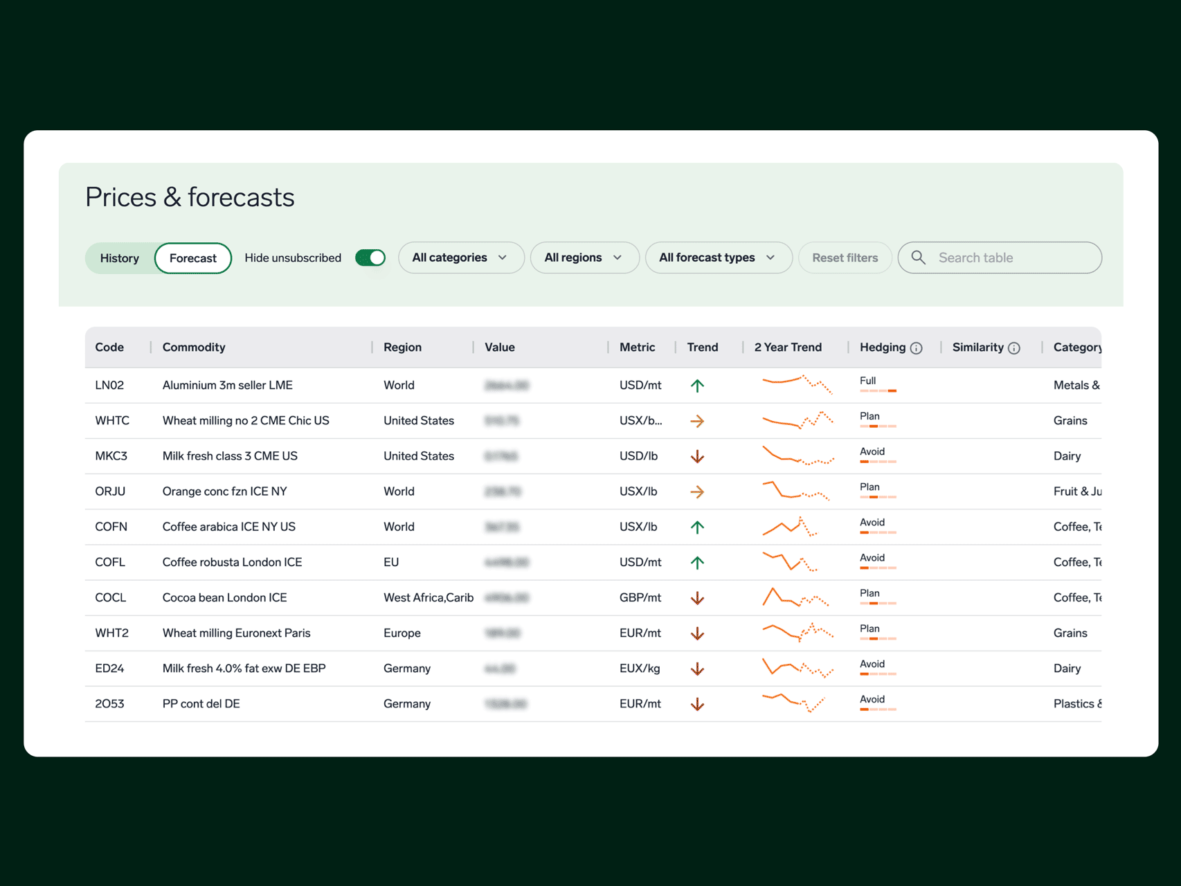 See what’s coming — and know how to act. Expana’s prescriptive commodity price forecasts go beyond price projections, showing you the drivers behind market shifts and what they mean for your costs. By anticipating pressures up to 3 years ahead, your team can plan budgets, adjust sourcing strategies, and negotiate with confidence in volatile markets.